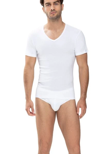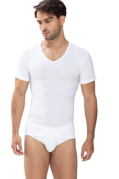 Met dit witte Mey T-shirt uit de ‘Noblesse’ collectie haal je een fijne basic in huis. Het shirt heeft een diepe V-hals waardoor deze niet te zien is bijvoorbeeld tijdens het dragen van een overhemd.