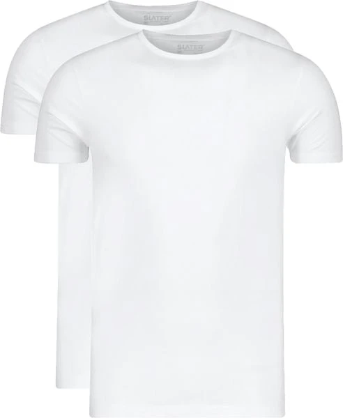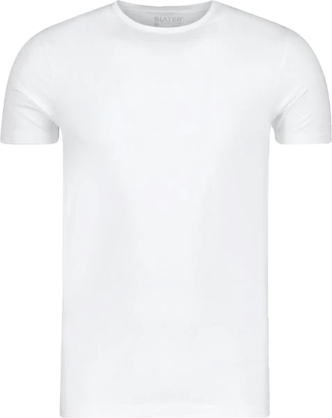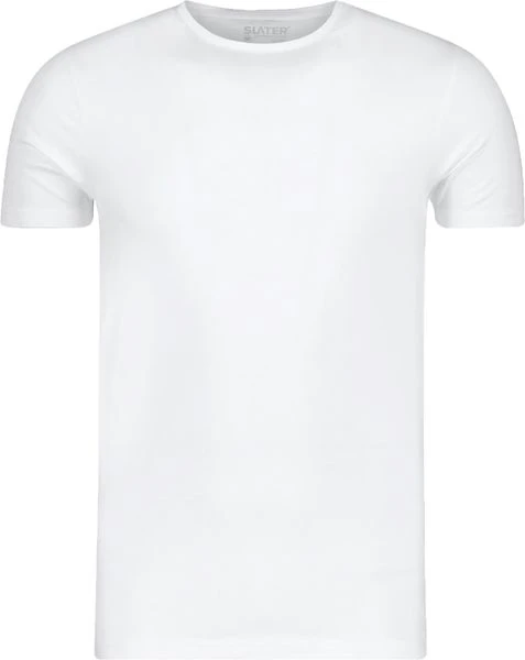 Met dit T-shirt van Slater haal je een goede basis van je outfit in huis. Het shirt heeft een heldere witte kleur en is voorzien van een O-hals. Ideaal om te gebruiken als ondershirt in combinatie met een overhemd, pullover, cardigan of blazer.Â