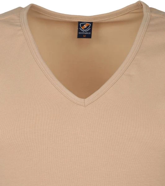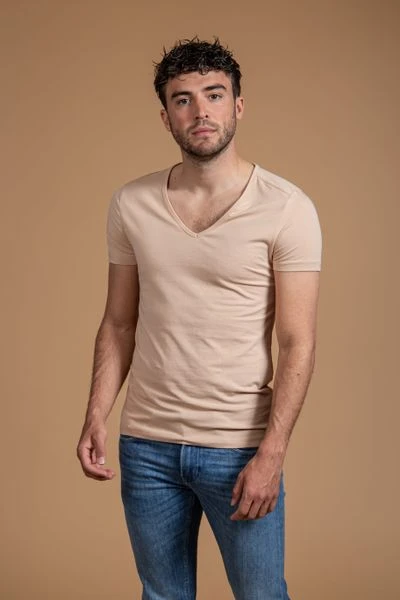 Set van 2 beige, basic T-shirts met extra diepe V-hals.