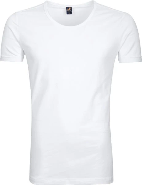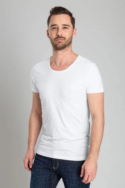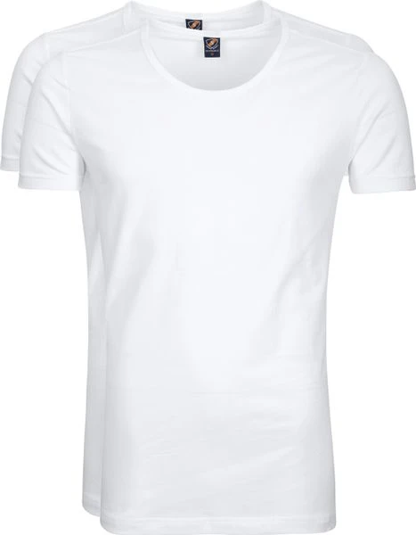 Het 2-pack T-shirts bevat twee shirts die gemaakt zijn van 95% fijn gekamd, biologisch katoen (150 grams) gemixt met 5% elasthaan (stretch). De shirts zijn GOTS gecertificeerd. Dit houdt in dat minstens 95% van het kledingstuk uit biologisch geproduceerde materialen bestaat. Daarnaast zijn de witte shirts bewerkt met een Soft Silk Finish, waardoor de stof heerlijk zacht en glad aanvoelt. De korte mouwen zijn voorzien van een gezoomde afwerking en de extra brede O-hals heeft een mooie smalle boord van 11mm. Verder zijn de T-shirts voorzien voor een langere body (lengte) voor extra draagcomfort.