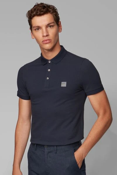 Mocht je op zoek zijn naar een stijlvolle polo dan is deze Hugo Boss Passenger polo echt iets voor jou. Het poloshirt heeft een klassieke donkerblauwe navy kleur en is afgewerkt met een drieknoopsluiting, een stijlvol pique structuur en grijze Hugo Boss patch op de linkerborst. Dit geeft de polo een moderne uitstraling.